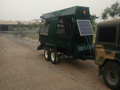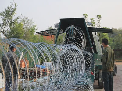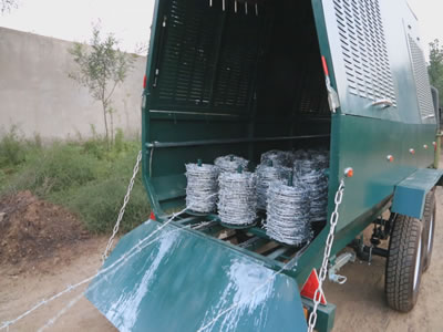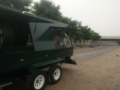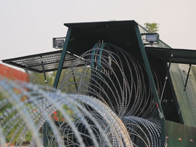 The system is designed to provide rapid protection - (75 to 1000 meter barriers of barbed tape/razor wire coils can be deployed in seconds).Barriers are fully re-useable.Equipment is supplied to uplift and recompress the barrier into modules, simple to handle and compact to store.A single carrier unit can quickly be refilled to drop many miles of barrier in a short space of time.Systems can be tailored to meet customers exact requirements.